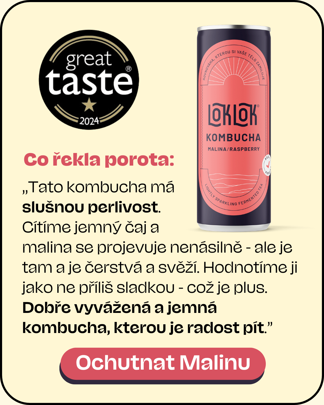 Loklok kombucha už několikrát uspěla v prestižní soutěži Great Taste Awards. Tahle soutěž, pořádaná Guild of Fine Food, je skutečným měřítkem kvality, kam se každoročně hlásí tisíce produktů z celého světa. A nás nesmírně těší, že jsme se zařadili mezi ty, které porota ocenila! 🍃